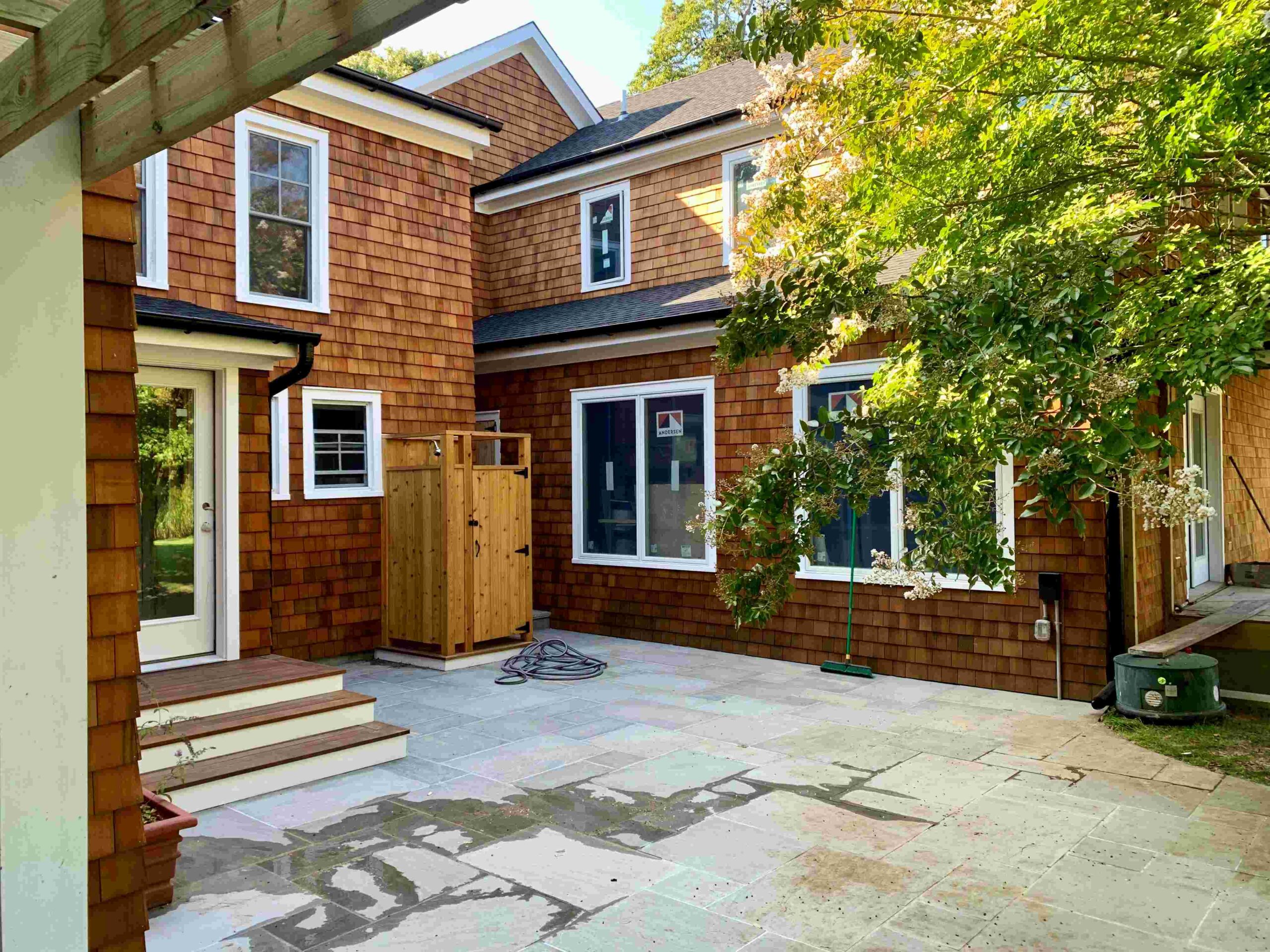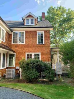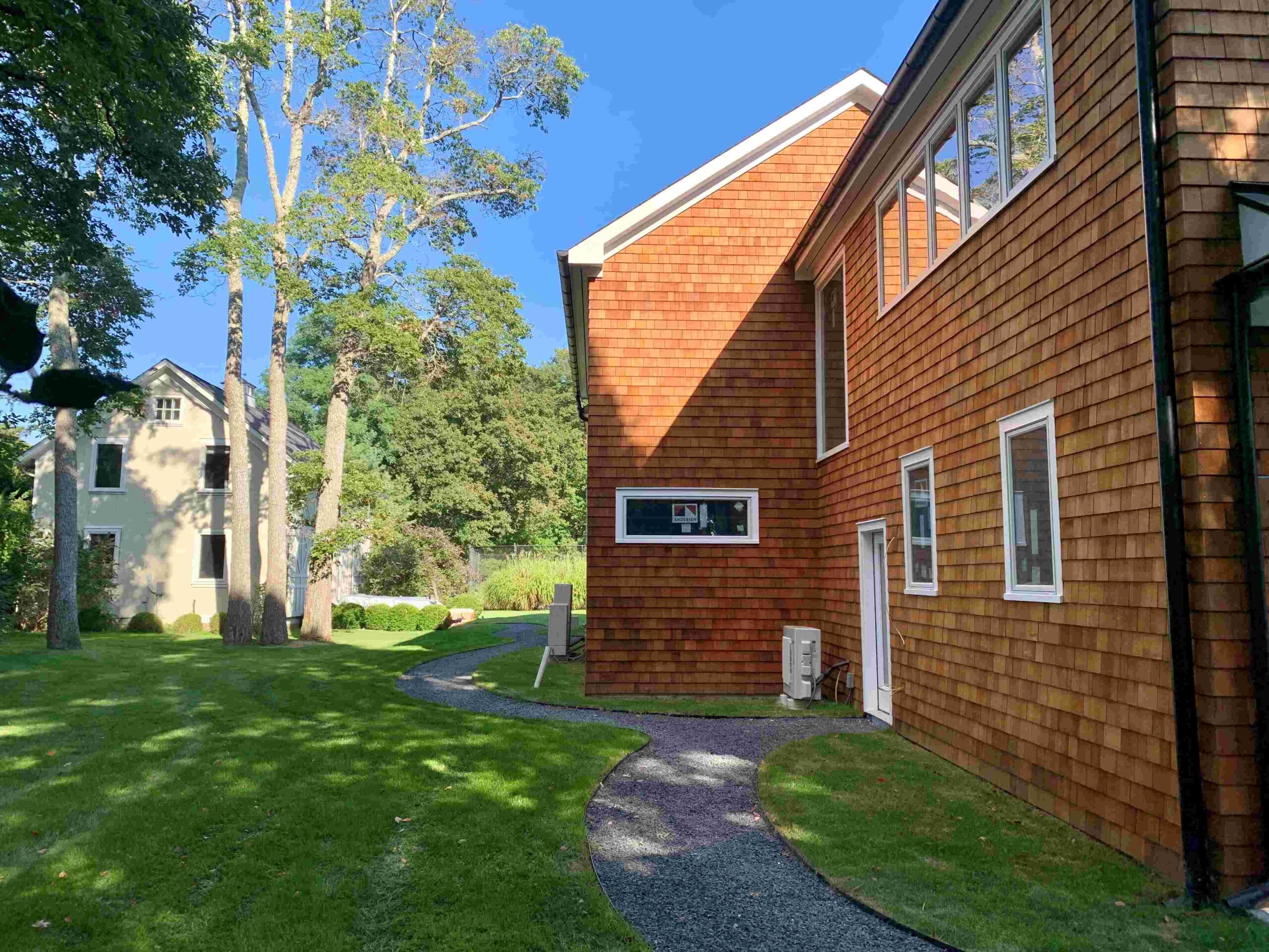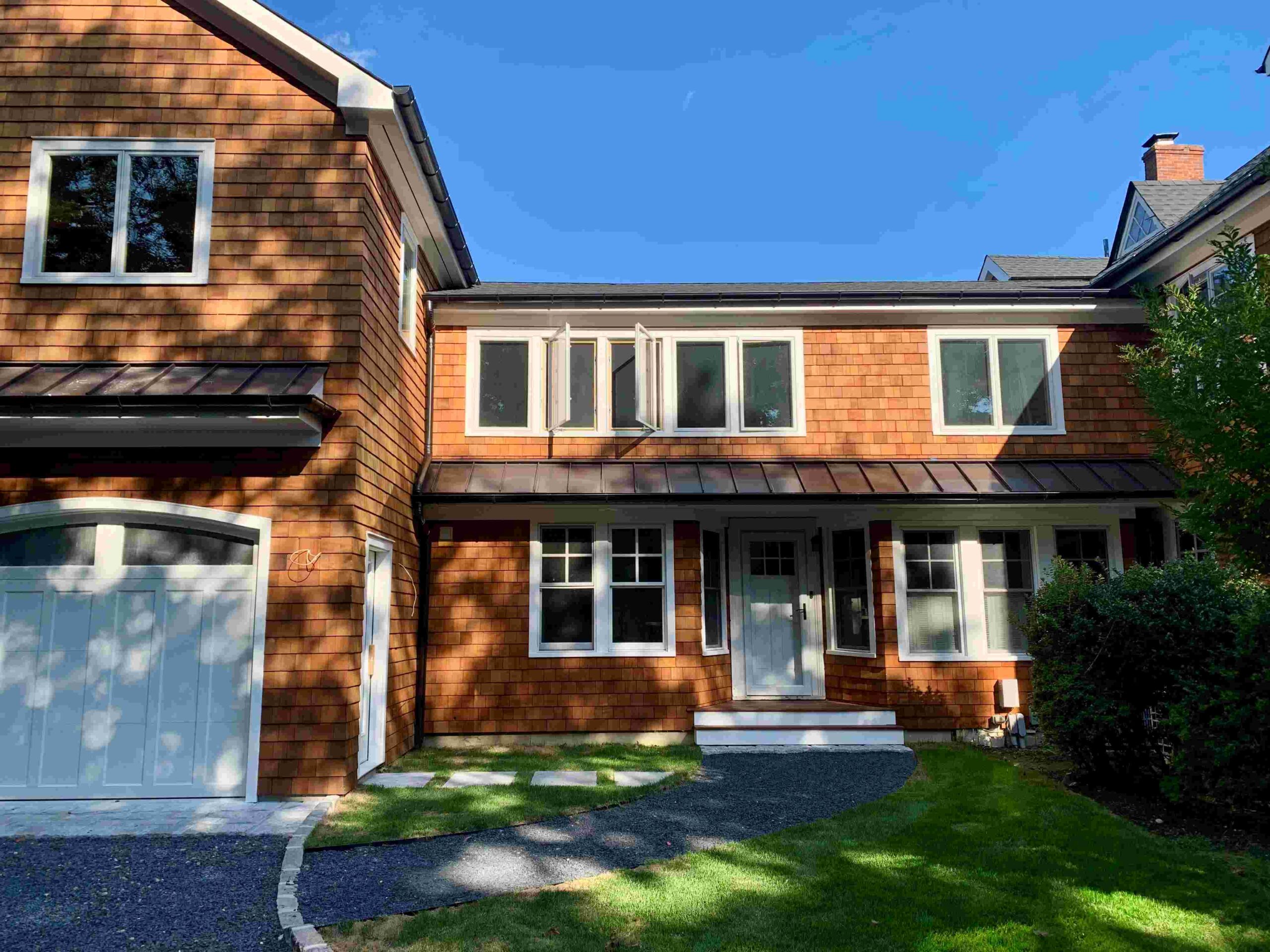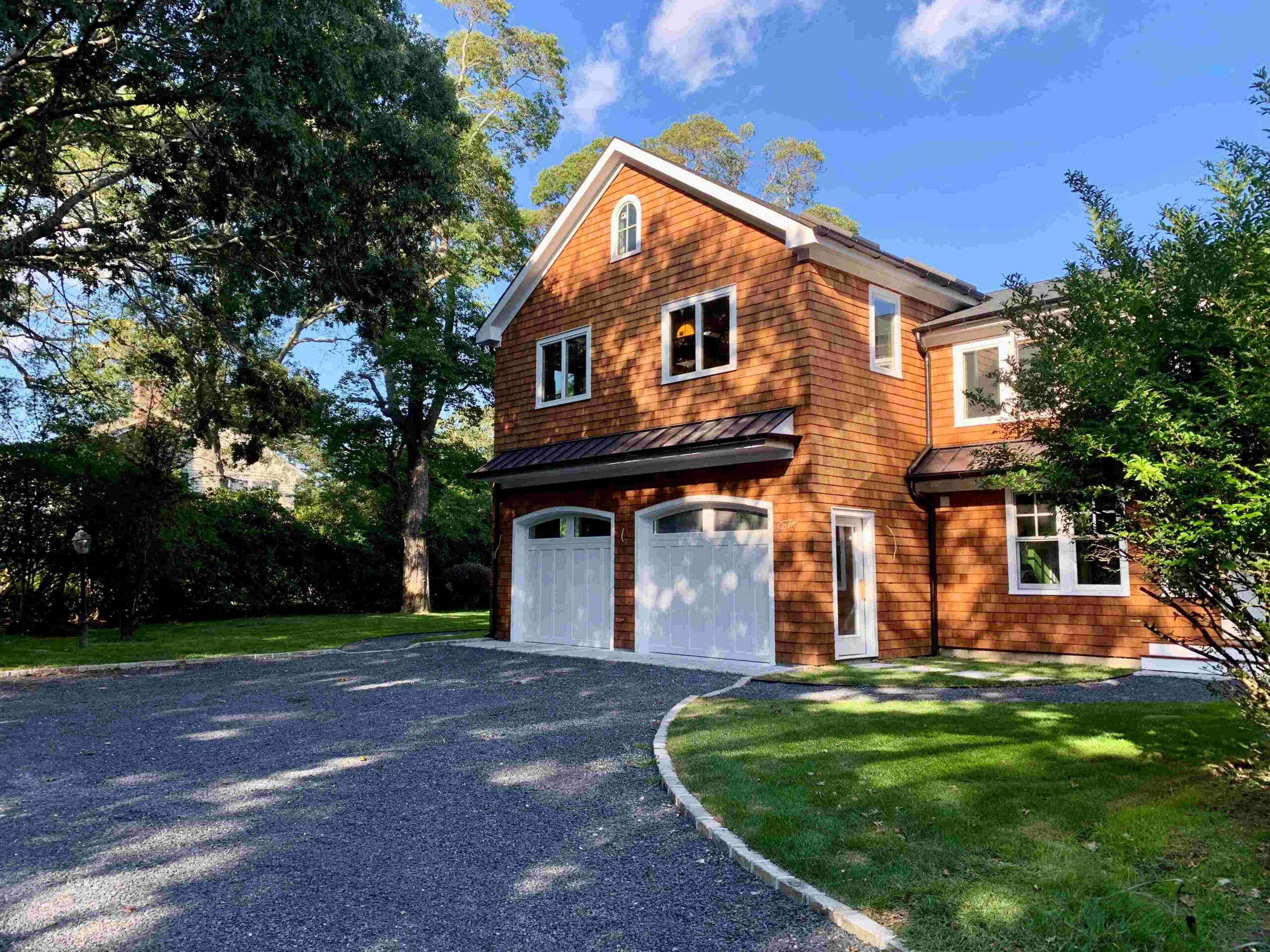 The Jagger Lane Residence, originally a 150-year-old bed and breakfast located in Westhampton, NY, has undergone a transformation that carefully balances preservation with thoughtful expansion. Our goal: to honor the home’s storied past while enhancing it for modern living. The existing 5,000-square-foot structure has been nearly doubled in size through an extensive addition and renovation. The new two-story wing features a two-car garage, gym, indoor lap pool, sauna, and bathroom on the first floor. Upstairs, a spacious woodshop, two bedrooms, a bathroom, and a laundry room provide ample flexibility for the homeowner. A central circulation corridor seamlessly links the new and original structures, connecting both floors of the home. Design features such as cedar shakes, carriage-style garage doors, and farmhouse metal roofing harken back to a time when this landscape was dotted with agricultural structures.