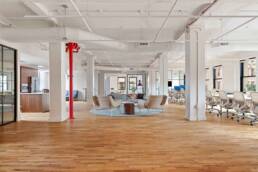 The Spring Street pre-built office space, located in the Soho neighborhood of Manhattan, provided the design team with a unique challenge: to design an attractive and flexible office space that would yield a tenant for building ownership that was eager to fill a vacant commercial space. The theory behind a pre-build is not a novel one. The prospect of living through a lengthy construction project is often a turn-off for a prospective tenant and, in some instances, can be a deal breaker, requiring them to front multiple months of rent while not even being able to inhabit the space. This has prompted many building owners to create somewhat generic, flexible offices in the hopes of luring a company to move in, creating the incentive of having a more or less move-in-ready space. What made this pre-build project unique was the prime location, which demanded a tenant that desired to be in this high-end and fashionable part of town, not always synonymous with corporate office spaces.